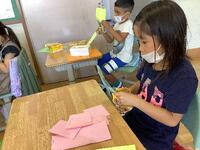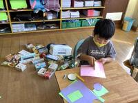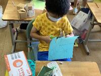 丸い形や四角い形を楽しみながら切っていきました。箱の形を楽しみながら学習していた1年生でした。