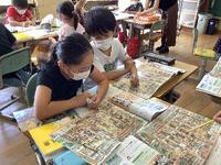 教科書にあるスーパーの絵を見て、気づいたことをプリントにまとめていきました。