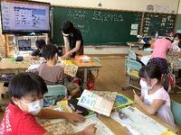 2年生は、生活科で学習した「野菜の紹介」について、タブレットを使ってまとめています。今日の授業では、グループに分かれて、紹介する練習をしていました。2年生から1年生へ「野菜の紹介」をする予定です。わかりやすく伝えるにはどうしたらよいか、考えながらはりきって説明の仕方を考えています。