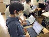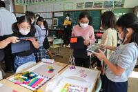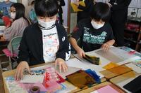 4年生が、図工の授業で「光のさしこむ絵の世界」の作品制作に取り組んでいます。光を通す材料を組み合わせながら、表現していきます。様々な特徴の材料を自由な発想で切ったり、貼ったり、重ねたり夢中です。作業の途中で、友達の作品を見ながら、タブレットで映像をとり、自分の制作活動に取り入れていきます。できあがりが楽しみですね。