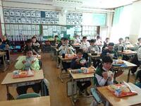 1年生が、音楽の授業で鍵盤ハーモニカを演奏していました。今日は「きらきらぼし」の「ソソファファミミレ-」を吹いてみました。みんな上手に吹けました。