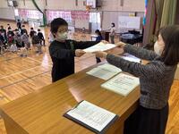 代表の児童はちょっぴり緊張しながらも、堂々と受け取り、うれしそうに教室へ持ち帰りました。