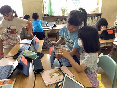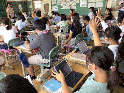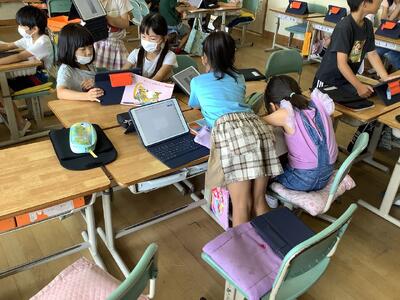2学級合同の授業で、楽しく活動していた3年生でした。