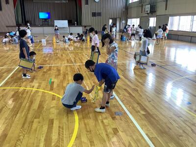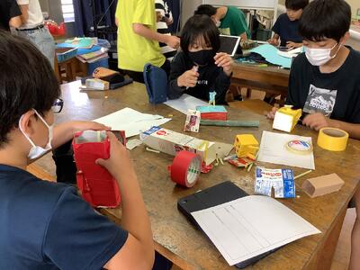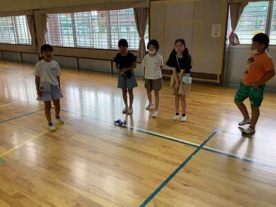 ゴムを引く長さを5cm、10cm、15cmと3回ずつ長さを測りました。15cmの時には、速く遠くまで動くので、子供たちから「おー!」と思わず歓声が上がっていました。