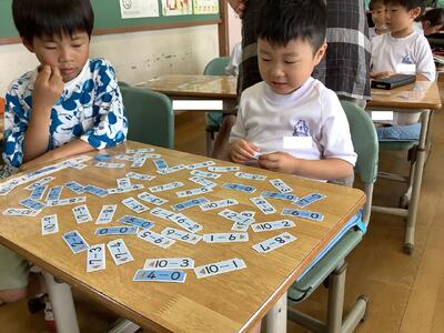 けいさんカードをばらばらにして、答えが同じ数のカードを取る活動をしました。