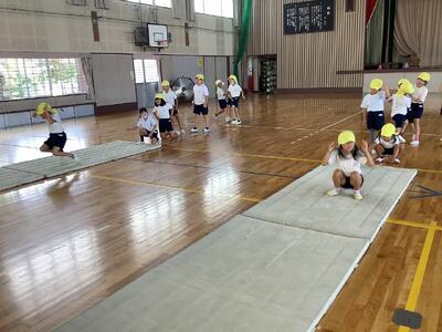 2組はマット遊びです。様々な動物になりきって、体を動かしていました。