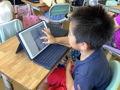 この日は一人一人が考えたくらべるテーマをタブレットで確認し、気になったテーマを選ぶ事をしていました。