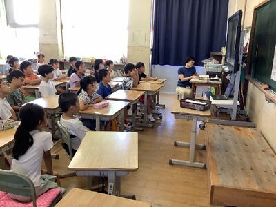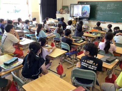 3年生の様子です。電子黒板が見える位置に椅子を動かし、(どんなお話かな?)とわくわくしながら聞いていました。