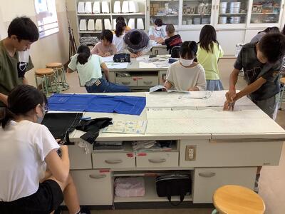 始まったばかりのエプロン作りですが、この後にすぐミシン縫いが始まったようです。