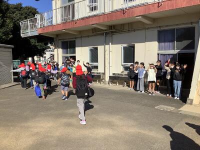 ちょうど図工室で学習中の6年生も見送ってくれました。