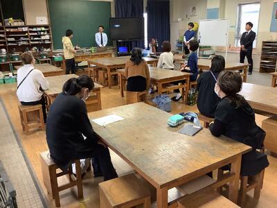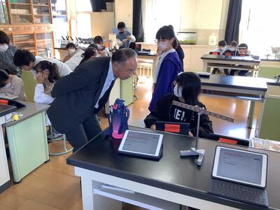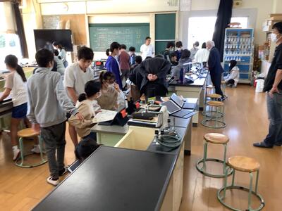 会の後、授業参観をしました。写真は6年生理科の授業を参加している様子です。