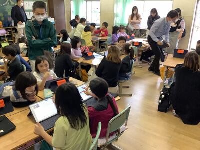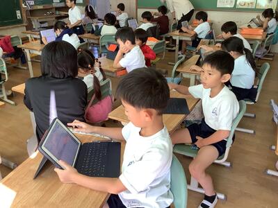 1年生はICT支援員さんが来る日に、タブレットの操作について学習を進めています。