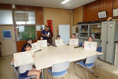 また、環境衛生週間啓発ポスターコンクールと標語コンクールで優秀な成績を収めた児童にも表彰しました。