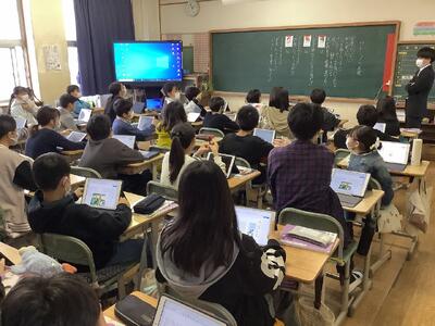 学習課題に対し、グループだったり個人だったりと、解決に向かってそれぞれ活動していました。