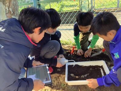 1年生は校庭で生活科の秋を見つける活動をしました。