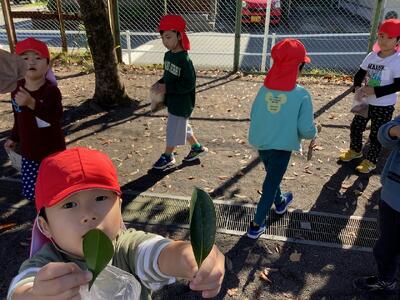 きっと、落ち葉も宝物のように感じるのでしょうね。大きな落ち葉、様々な色の落ち葉を見つけては大切そうにビニール袋に入れていました。