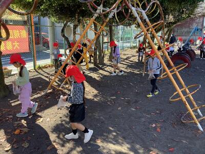 1年生はビニール袋を片手に、秋を見つけに集中していました。