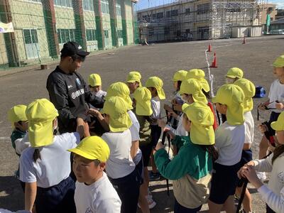 静岡ブルーレブスの藤井さんが13日に引き続き、ボールを投げることとタグラグビーの出前授業をしてくれました。