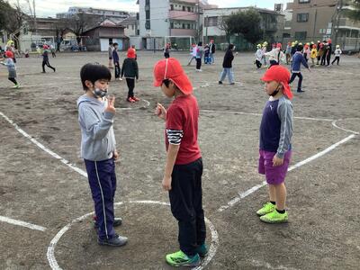 体育委員会の5年生が、昼休みに十字架おにを計画してくれました。