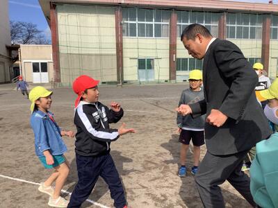校長先生、教頭先生にじゃんけんで勝つととてもうれしそう。6年生でも、とび跳ねて喜んでいました。