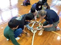 班で細いロープを使ったり、学年で太いロープを使ったりしてロープと戯れました。