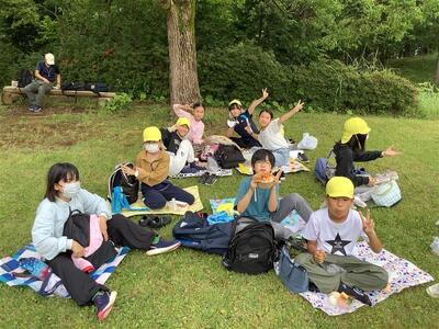 大自然の中で食べる、自分たちで作ったカレーは格別です。みんなモリモリ食べていました。少し早い夕飯でしたが、中にはおかわりをする子もいました。