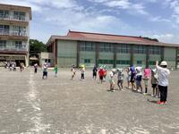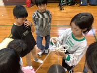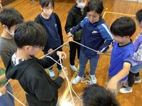 班で細いロープを使ったり、学年で太いロープを使ったりしてロープと戯れました。
