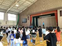 また、授業後半にはオリジナル曲を披露していただき、体育館がまるでライブ会場のように盛り上がりました。最後に徳倉小と交流のある「東レアローズ静岡」の応援ソングを、合流した1年生と3年生と一緒に楽しみました。アンコールにも応えていただき、貴重な体験と楽しい時間を過ごすことができました。
