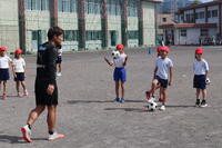 来月の運動会に向けて、速く走るこつを真剣に聞いていました。また、相手が取りやすいパスの出し方を学び、その後チームに分かれて試合で行いました。この事業をきっかけにサッカーに興味をもつ子が増え、授業でサッカーをするのを楽しみにしていました。
