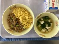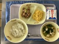 ☆麦入りご飯☆牛乳☆二色丼☆具たくさん汁☆なつみかんゼリー