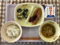☆麦入りご飯☆牛乳☆アジフライ(ごまソース)☆蒸しキャベツ☆具たくさん汁