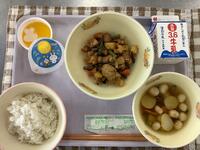 ☆麦入りご飯☆牛乳☆タラと白いんげん豆の揚げ煮
