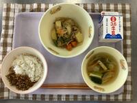 ☆麦入りご飯☆牛乳☆大根のそぼろに☆お好み☆すまし汁☆ふりかけ