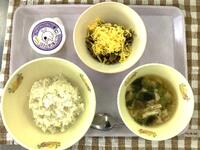 ☆じゃこ飯☆牛乳☆里芋みしまコロッケ☆茎わかめのきんぴら☆味噌汁
