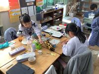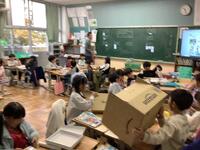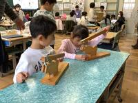 1年生、図画工作の様子です。「パワーアップしたあきのおもちゃ」を作っていました。やじろべえ、めいろ、けんだま、どんぐりごま、ロケット、マラカス、かんむり、ペンダントの中から自分の作りたい物を選びます。同じ物を作る友達同士でグループになったら制作開始です。みんな夢中になって作っていました。どのようにパワーアップしたおもちゃができるのか、楽しみです。