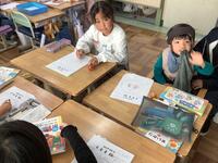 1年生、生活科の様子です。どんぐりや落ち葉、松ぼっくり等を使って作ったおもちゃをみんなで楽しんでいました。的当てや迷路、釣り、コマまわし等々、アイディアいっぱいのおもちゃがたくさんありました。