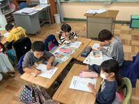 2年生「図工」の様子です。紙版画を作製していました。動物と私、というテーマです。切り取った紙を丁寧につなぎ、動物を仕上げていました。どんな作品になるか、楽しみですね。