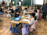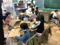1年生「生活科」の様子です。松ぼっくりやどんぐりなどを使っておもちゃや楽器を作り、それらを使ったお店を開くようです。子供たちは、どんなお店にしようかと話し合いながら進めていました。