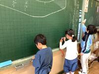 2年生、算数の様子です。かけ算九九で、3のだんの九九の続きを考えていました。「さんくにじゅうしち」の続き、3×10、3×11、3×12はどうなるのでしょうか。子供たちからは「できるよ!」と声があがっていました。