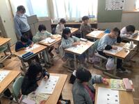 2年生「書写」の様子です。漢字の字形について学習をしていました。字形を整えて書くことで、きれいな漢字となります。普段から字形に気をつけられるといいですね。