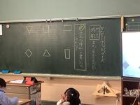 1年生「算数」の様子です。「かさくらべ」の学習です。長さ、かさ、広さの比べ方の学習をしています。どれも同じ比べ方ができる、ということを学んでいきます。