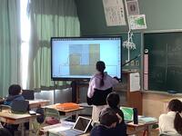 4年生「算数」の様子です。面積の学習です。今日は、凹型のような形の面積の求め方を考えていました。移動させて形を変えたり、分割したりとみんな工夫をして求めていました。