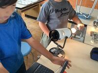 4年生理科で月の満ち欠けを、ライトとダンボール球で疑似体験しました。