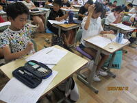 今日の算数は、学習のまとめと計算練習でした。今日も気温の高い日となりましたが、エアコンの効いた教室の中はしんと静まり、子供たちはそれぞれ自分の課題に集中して取り組んでいました。夏休みまであと数日。学習を頑張っている4年生です。