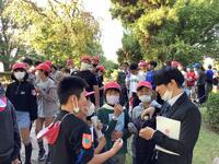 いよいよ2日目の班別学習の開始です。子供たちはそれぞれの班で計画した予定に従って見学や体験を行います。クラスごとの記念撮影を終え、元気に出発していった子供たちです。