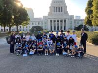 体験プログラム終了後に、国会議事堂内の見学を行いました。参議院の本会議場、委員会室、控室、御休所等をみてまわりました。最後に国会議事堂をバックにクラスごと記念撮影をしています。