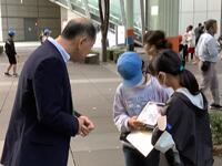 東京国際フォーラムでの三島PR大作戦の様子です。これまでに総合的な学習の時間で取り組んできたことを伝える場でした。子供たちはそれぞれに声を掛けて三島の紹介を行いました。どの子もPRに取り組むことができました。