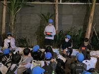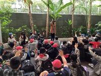朝食を終え、ホテルから出発する出発のつどいを開きました。ホテルの方へのお礼、めあての確認等を行い、今日の活動への心構えをもちました。今朝の子供たちは、みんな元気です。これから始める班別学習に向けてやる気いっぱいです。
