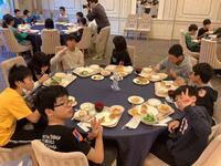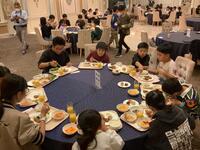 子供たちが楽しみにしていたホテルでの夕食タイムです。今日は朝からたくさん活動しているため、食も進んだようです。食べ過ぎ注意ですね。