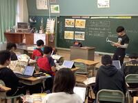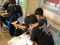 6年生の社会の授業の様子です。「江戸時代の人々は身分に応じてどのように暮らしていたのだろう」というめあてのもと、百姓の暮らしについて考える学習を進めていました。子供たちは、その暮らしについて、配付された資料や教科書、資料集をもとに調べ、1人1台端末のワークシートに記入していきました。集中して学習に取り組んでいる6年生です。